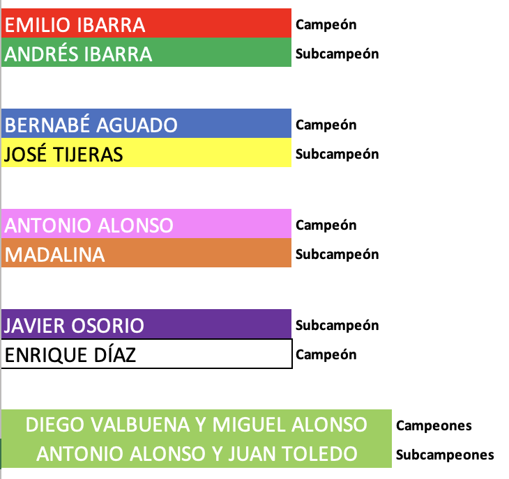 MIGUEL vs ADRIÁN Jueves 18:00